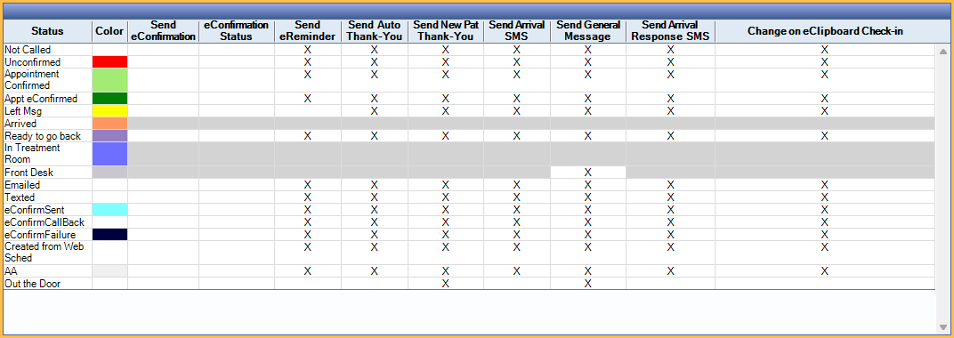 Single-click into the grid to determine which statuses do and don't send a message.