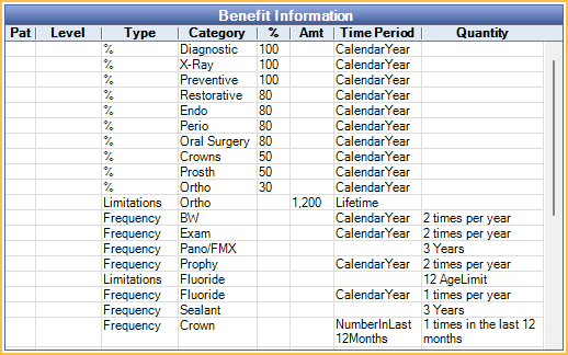 Lifetime Max: The maximum orthodontic benefit. This is separate from the individual and family Annual Max above as long as the insurance category spans are set correctly. The correct setup (and default) is to have an Ortho span of D8000 to D8999 and to exclude that span from the General category.