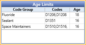 Options shown in this area determined by Code Groups setup. Only Code Groups marked Show In Age Limits are listed.