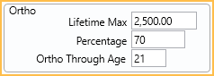 Ortho Through Age: Used with codes that fall into Ortho insurance category span. This affects insurance estimates. 0 is not a valid entry.
