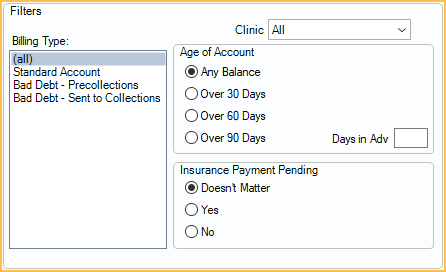 Insurance Payment Pending: Select whether to include patients who have insurance payments pending.