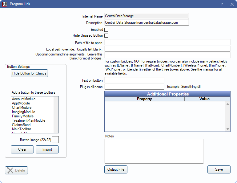 In the Main Menu, click Setup, Program Links. Double-click on Central Data Storage.