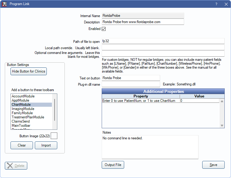 - Double-click on Additional Properties to change settings. Use the PatNum (enter 0) or ChartNum (enter 1) as the patient ID.