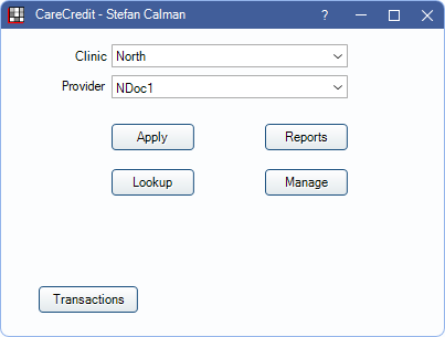 Transactions: Opens the CareCredit Transactions window.
