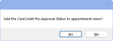- Click Yes to quickly add the CareCredit Approval Status to Appointment views. The Appointment Views window opens.