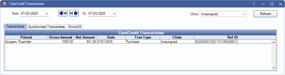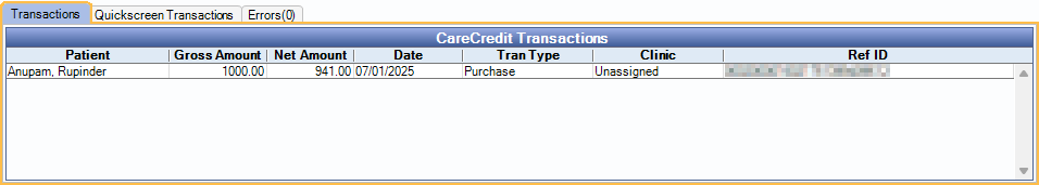 - Ref ID: Unique identifier assigned to this CareCredit transaction.