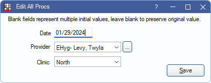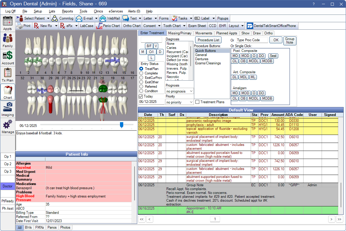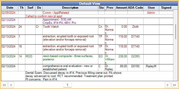 - Status (treatment planned procedures show before completed procedures)