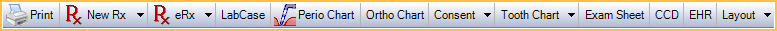 - eRx: Create an electronic prescription. If using DoseSpot, opens the DoseSpot eRx / Prescription interface. If the logged-on user is a Proxy user, a prompt displays to select a provider before launching the DoseSpot interface. If using Ensora eRx, opens the Ensora eRx / Prescription interface. If eRx is not enabled for the practice, an error displays. Click the dropdown to view additional options.
