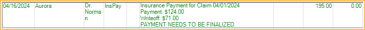 Alternatively, batch insurance payments can be finalized from the Manage Module using the Batch Insurance Payment feature. If Finalize claim payments in Batch Insurance window only is enabled in Preferences, all insurance payments must be finalized from the Manage Module using the Batch Insurance Payment feature.