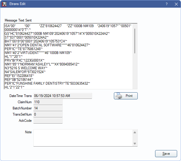 Message Text Sent: Contains any data sent for an electronic claim (i.e., X12).