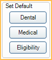 Determine the default clearinghouse for Dental, Medical, and Eligibility. A default must be set for each option, even if the practice is not using each option (e.g., sending medical claims or processing eligibility).