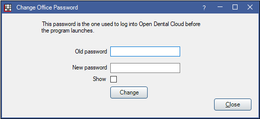 This window is only available for Open Dental Cloud users when launching Open Dental from a web browser. If launching Open Dental from Amazon WorkSpace instead, see Cloud Users.