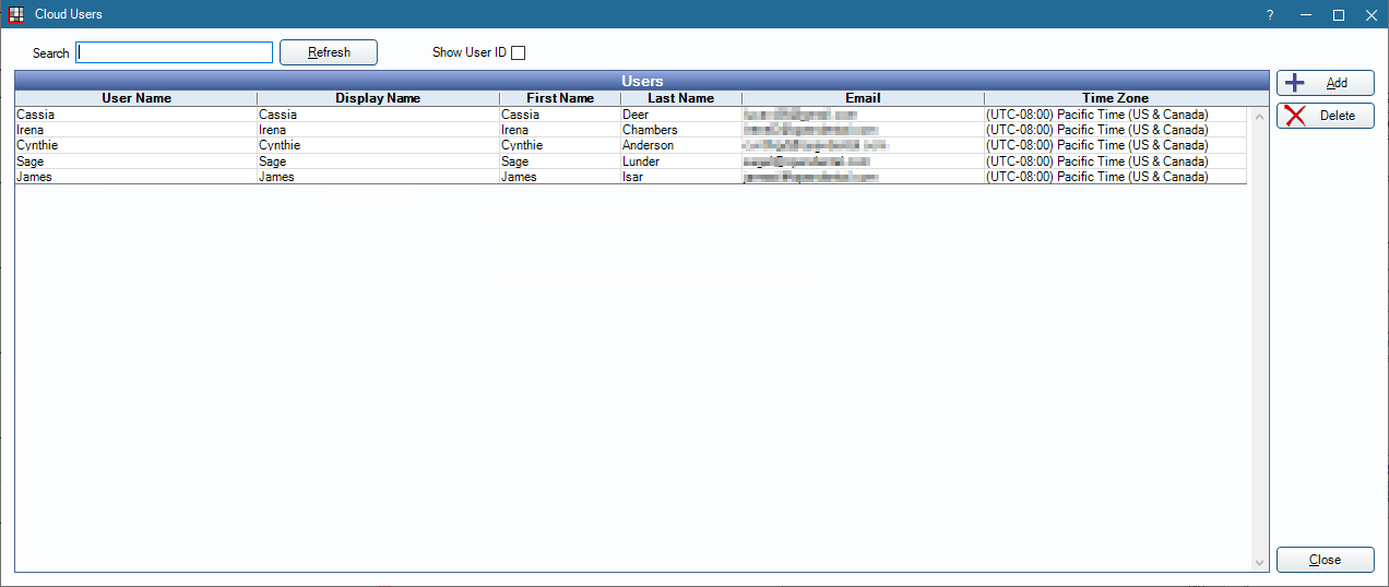 In the Main Menu, click Setup, Cloud Users.