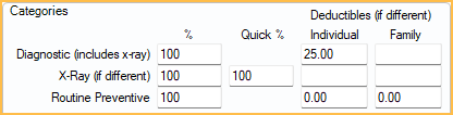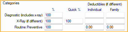 When the x-ray deductible is different than the diagnostic deductible, enter the deductible for X-Ray then enter the amount that applies to Diagnostic.