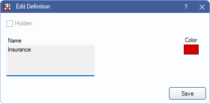 Click the colored block to select a Color. Click Save to exit the window and keep any changes. The item cannot be renamed or hidden.
