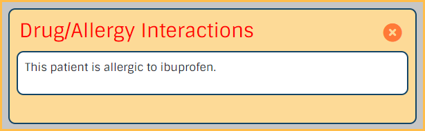 Prescribing a drug the patient is allergic to results in a warning in the Patient Details dashboard.