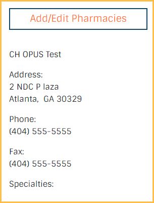 - To remove a pharmacy, click Add/Edit Pharmacies and select the 'x' next to Pharmacy Name.