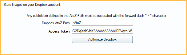- Enter the folder in Dropbox that store the images and documents. The default is /AtoZ.