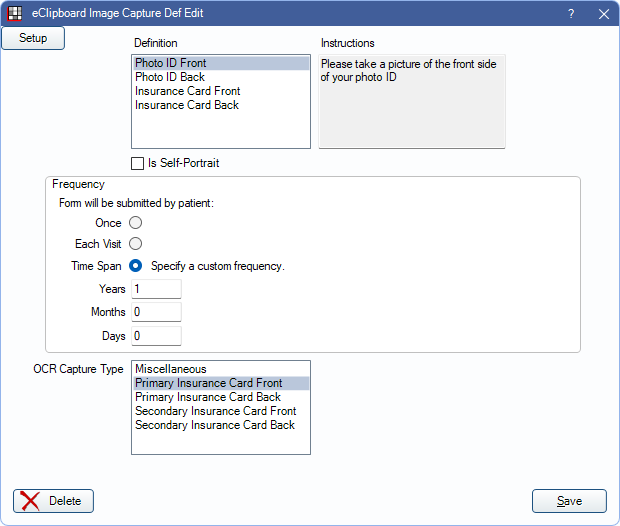 Click Setup to add or edit eClipboard image definitions.