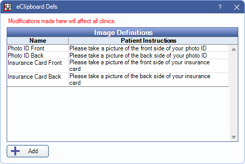 In the eClipboard Setup window, under the Images grid, click Add or double-click an existing image definition to edit.