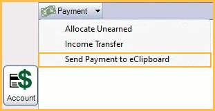 In the Account Module, click the Payment dropdown. Select Send Payment to eClipboard.