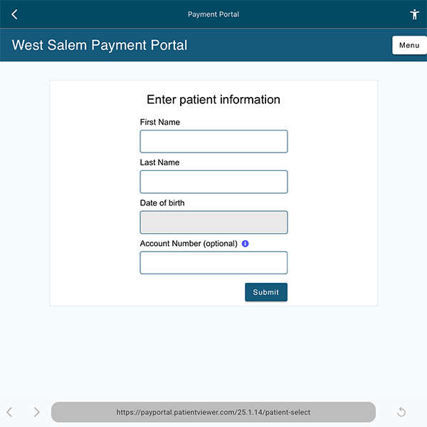 When selected, the Payment Portal opens. Patients can continue through the Payment Portal prompts to make their payment.