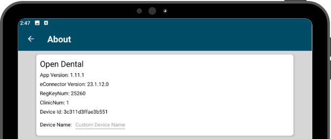Use the eClipboard Menu to view About information. An Open Dental username and password is required.