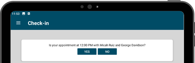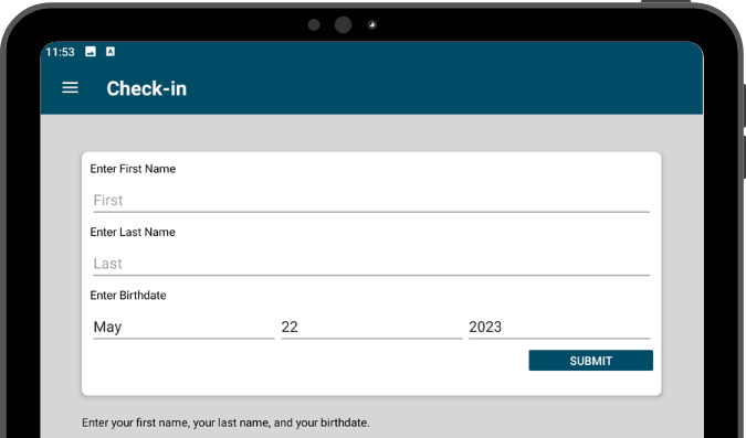 - Alternatively, when Display check-in questions individually is checked, the first name, last name, and birthdate prompts each appear on their own screen.