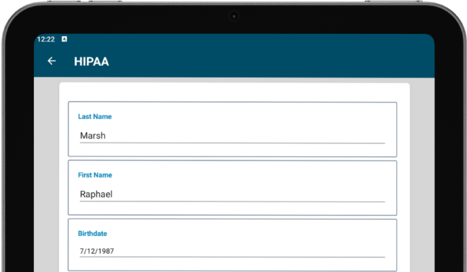 - Forms use the mobile layout of custom sheets. Some fields may pre-fill with patient information. These fields can be edited or updated as needed. Once filled, patients can sign digitally using the touch screen of the device.