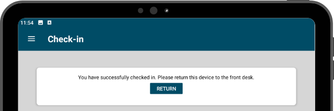 Click Return to return to the Check-In screen, or wait 20 seconds to refresh automatically.
