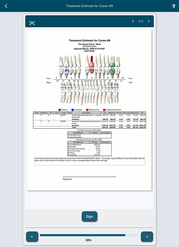 Saved Treatment Plans can be sent to eClipboard for patients to review and sign.