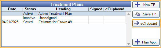 If a patient is currently in an eClipboard session, highlight the Saved Treatment Plan then click eClipboard.