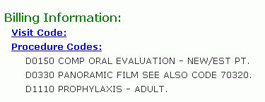 - Procedure Codes show in the patient's progress notes, under Billing Information (scroll to the bottom).