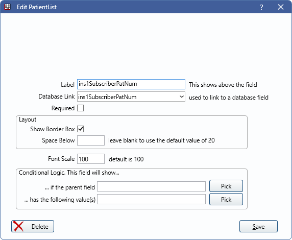 Database Link: Where this information imports into the database. Select from ins1SubscriberPatNum or ins2SubscriberPatNum.