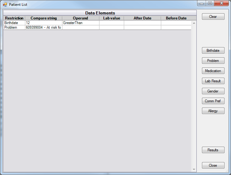 List criteria will not be saved when you close the Patient List window. Each time you generate a list, you must define the criteria you want.