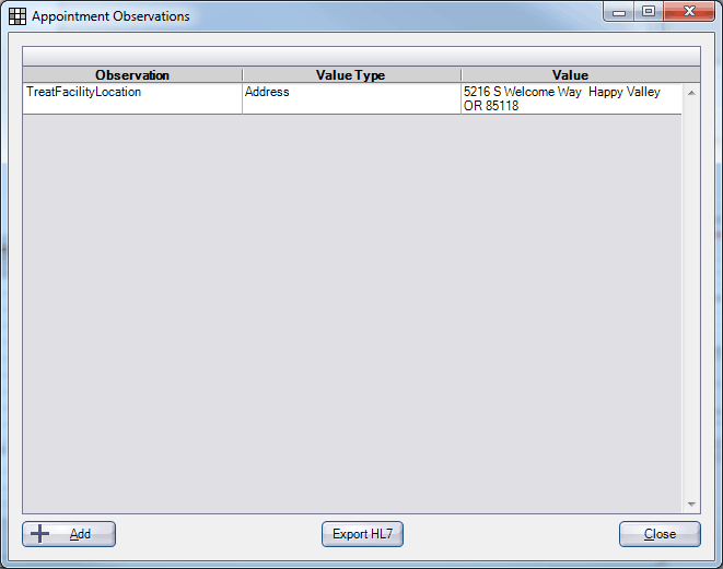 Syndromic Surveillance Data can be exported as an HL7 ADT standardized message. To record observations see Enter Syndromic Surveillance Observations.