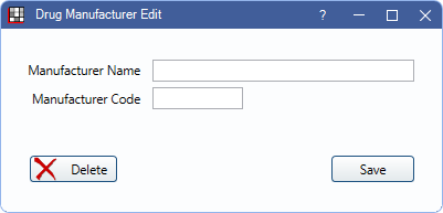 In the Main Menu, click Setup, Chart, EHR, then click Drug Manufacturer.
