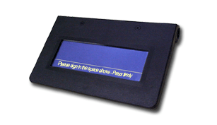 | SigLite LCD 1 x 5 This pad has an LCD screen, so users can see the signature as they sign, just like on paper. It works very well, but is more expensive. The screen background is actually gray rather than backlit. | T-L460-HSB-R | Topaz SigLite LCD |