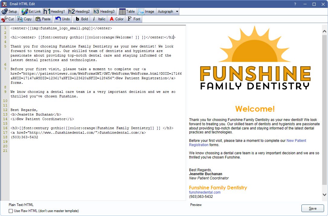 Emails sent from Open Dental can have HTML coding to include images, fonts, and colors.
