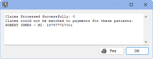 - Claims with mismatched names (i.e., the patient name on the claim in Open Dental does not match the patient name on the ERA) may still be processed if other information exists to match the claims (e.g., claim identifier). A note is added to the auto processed ERA if any name mismatches exist.