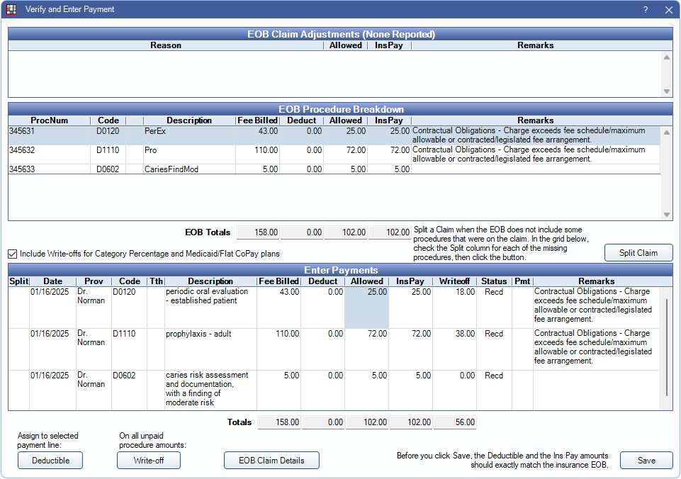 - Enters initial payments, supplemental payments, reversals, and preauthorizations. Claims and Claim Procedures ( claimprocs ) have their status changed appropriately and date received is updated.