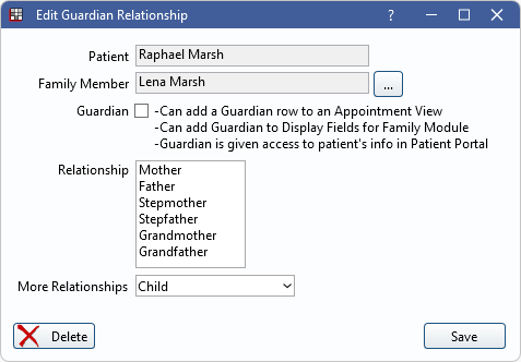 Guardian: Check this box designate the family member as the patient's guardian.