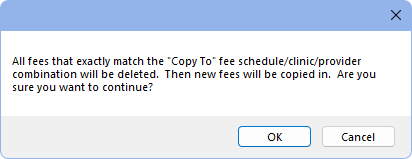 - If a fee schedule, a clinic, and a provider are selected, only fees that are clinic and provider specific will be copied.
