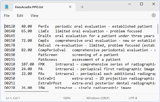 - Often the fee schedules provided to offices have no standard format. Depending on the format, the file may need to be edited or converted before it can be imported. See File Requirements for more information.