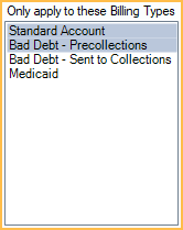 Only Apply to these Billing Types: Select which accounts should have charges applied based on the guarantor's Billing Type.