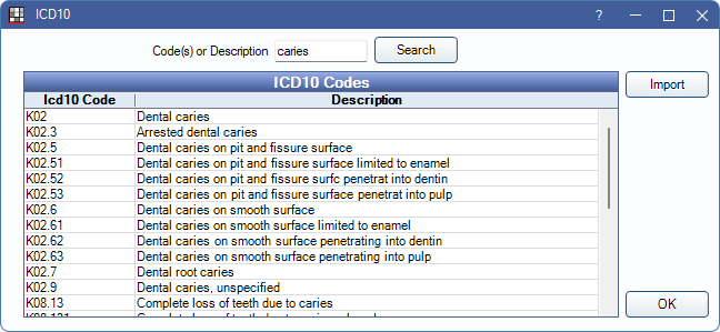 Double-click the code to select it and close the window. The selected code is automatically entered into the corresponding diagnosis field.