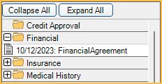 Files are organized in tree view by categories (folders). The documents within a folder/category are based on files stored in the patient's A to Z Folder. See Definitions: Image Categories to customize folders/categories.