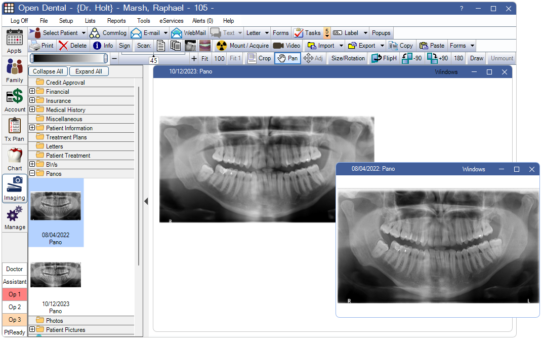 The Imaging Module is a place to scan and store most images, radiographs, forms, and letters that are traditionally stored in a paper chart.