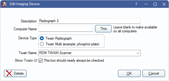 Dexis sensors using GxTwain drivers require the Description field in the Edit Imaging Device window to include the word "Dexis", otherwise xray images are inserted into mounts in reverse order.