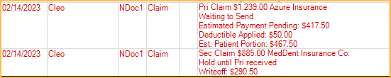 Write-offs should typically be entered after all claims have been received for the procedures to prevent entering write-off amounts that cause procedures to be overpaid. If only one insurance is in-network, write-offs should be entered onto that carrier's claim. If both are in-network, write-offs can be entered on either claim.